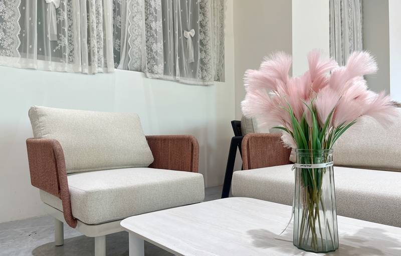 在舒适度与美学设计上,Mona系列同样亮点纷呈。产品扶手采用细腻编织绳工艺,自然纹理交织间尽显质朴韵味,为户外空间注入松弛氛围;座垫与靠包则选用高品质涤纶面料搭配速干棉内芯,软弹支撑感恰到好处,既实现"久坐不塌"的耐用性,又兼具"易清洁"的实用特性,面对饮料泼洒、灰尘附着等日常污渍,只需轻轻擦拭即可恢复洁净,极大地降低了户外家具的维护成本。另外,Mona系列即使长期放在户外日晒雨淋,也不用收纳,产品主打的就是一个舒适度与随意度。