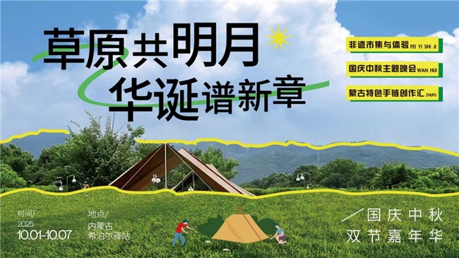 一场融合国风、民俗、红色记忆与草原风情的文化盛宴即将在希泊尔草原盛大开启。倒计时1天,草原、明月与浓郁的民族风情都已准备就绪,诚邀全国游客共赴这场别样的双节之约,在秋月清风中感受家国情怀,在非遗技艺中触摸文化脉搏,在互动体验中收获金秋最美回忆。