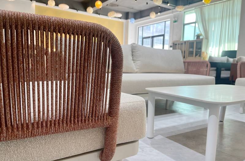 在舒适度与美学设计上,Mona系列同样亮点纷呈。产品扶手采用细腻编织绳工艺,自然纹理交织间尽显质朴韵味,为户外空间注入松弛氛围;座垫与靠包则选用高品质涤纶面料搭配速干棉内芯,软弹支撑感恰到好处,既实现"久坐不塌"的耐用性,又兼具"易清洁"的实用特性,面对饮料泼洒、灰尘附着等日常污渍,只需轻轻擦拭即可恢复洁净,极大地降低了户外家具的维护成本。另外,Mona系列即使长期放在户外日晒雨淋,也不用收纳,产品主打的就是一个舒适度与随意度。